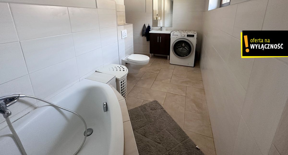 Dodatkową zaletą jest duże wyjście z salonu i kuchni bezpośrednio na ogród oraz taras, które zapewnia dużo naturalnego światła i tworzy idealną przestrzeń do odpoczynku oraz spotkań z rodziną i przyjaciółmi.
