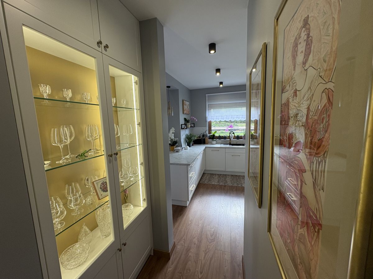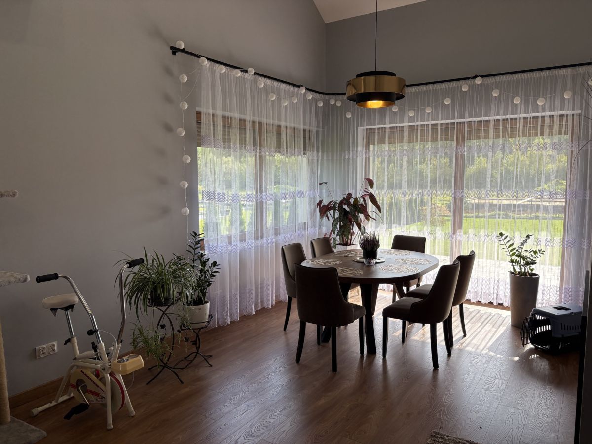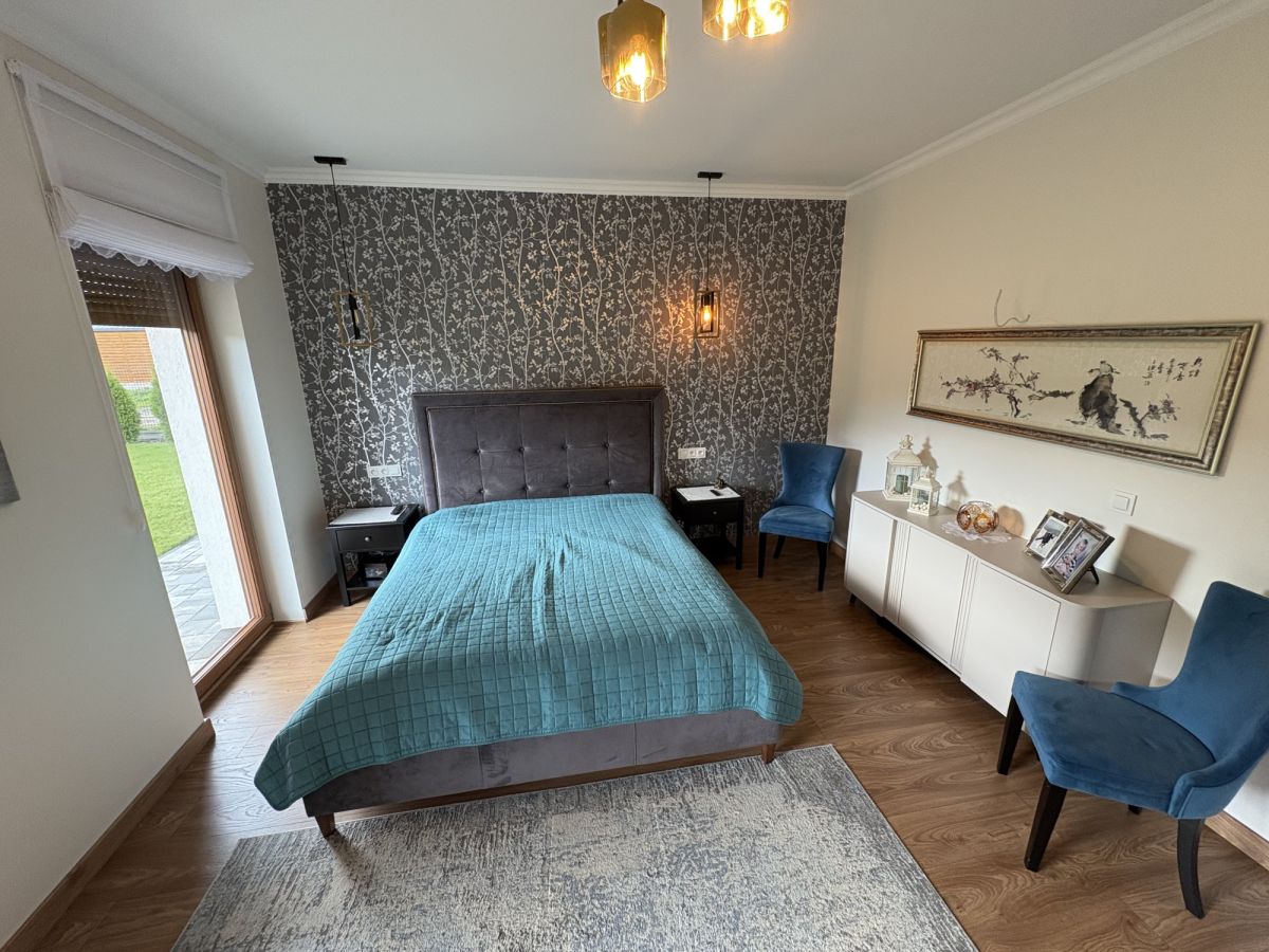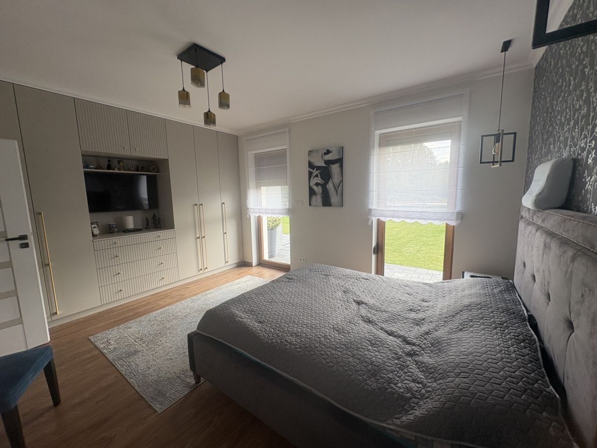 Dom został zaprojektowany z myślą o funkcjonalności i wygodzie mieszkańców. Przemyślany układ pomieszczeń zapewnia wyraźny podział na strefę dzienną i prywatną. Wnętrza są jasne, dobrze doświetlone, wykończone w nowoczesnym standardzie.