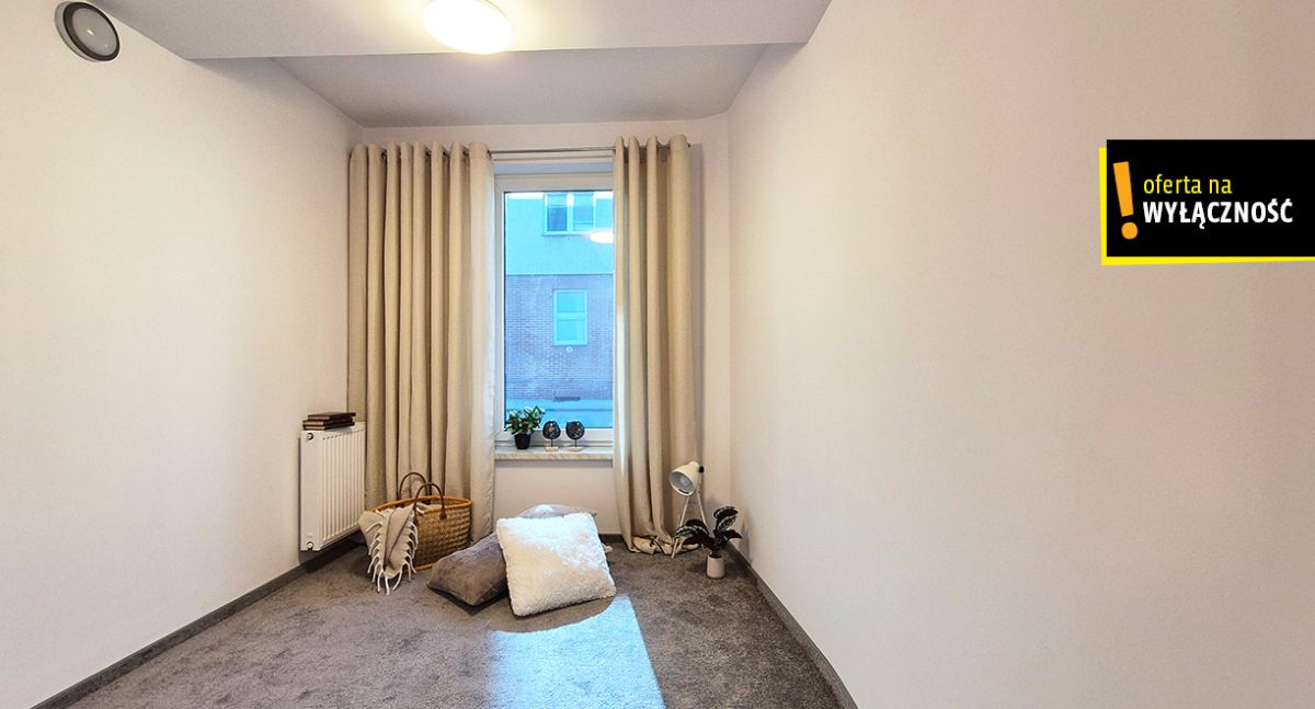 Duże znaczenie ma tu światło i poczucie prywatności. Weneckie szyby filtrują spojrzenia z zewnątrz, nie odbierając wnętrzu jasności, a rolety antywłamaniowe porządkują temat bezpieczeństwa. Ogrzewanie i ciepła woda z sieci miejskiej zapewniają stabilność i przewidywalność kosztów. Całość uzupełnia spokojne otoczenie i dostępność miejsc parkingowych bez codziennej walki o przestrzeń.