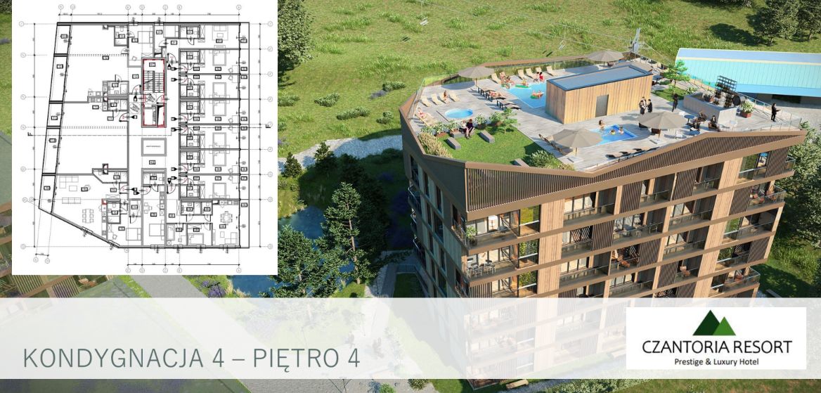 Czantoria Resort to nowoczesny kompleks apartamentowo‑hotelowy zaprojektowany jako pełnoprawny obiekt resortowy, a nie zwykły apartamentowiec.